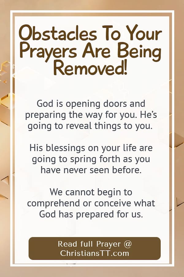 Let Us Pray – Obstacles To Your Prayers Are Being Removed!