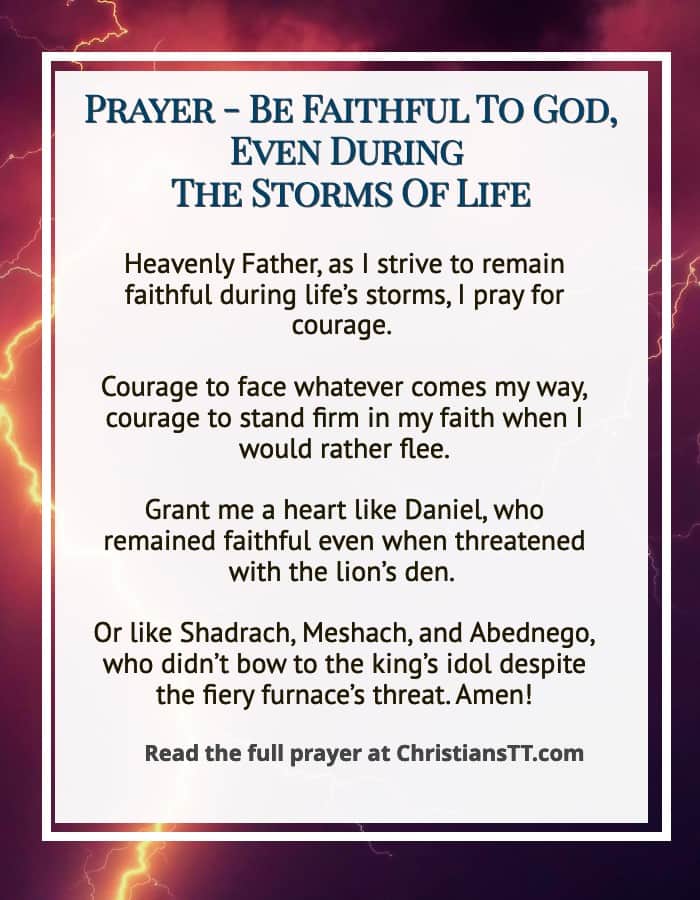 Heavenly Father, as I strive to remain faithful during life’s storms, I pray for courage. Courage to face whatever comes my way, courage to stand firm in my faith when I would rather flee.