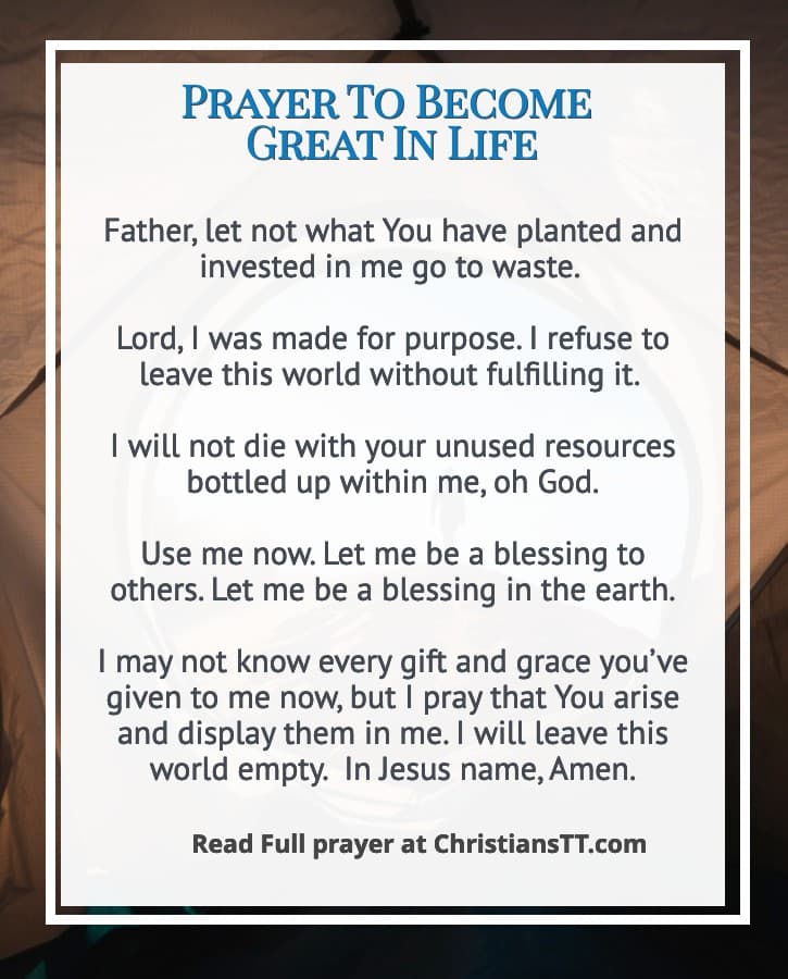Oh Lord, let every seed of greatness that you have planted in me, come alive, in the name of Jesus Christ. Every unique abilities in me Lord, display them that I may know them and be a blessing to others. Every spiritual gift and talent in me, let them be made manifest, in the name of Jesus Christ.