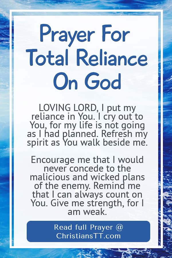 Dear Father, Please forgive me for my lack of faith and for doubting you. Father I understand when I put my faith and reliance on you i see a complete different picture on your time. Father I cry out to. I need your help. Refresh my spirit as you walk beside me. Give me strength Father. I know i can count on you Father God. You are a good God. You know my heart and my soul. I put all my confidence in you Father i know for You will never leave nor forsake me. In Jesus Amen.